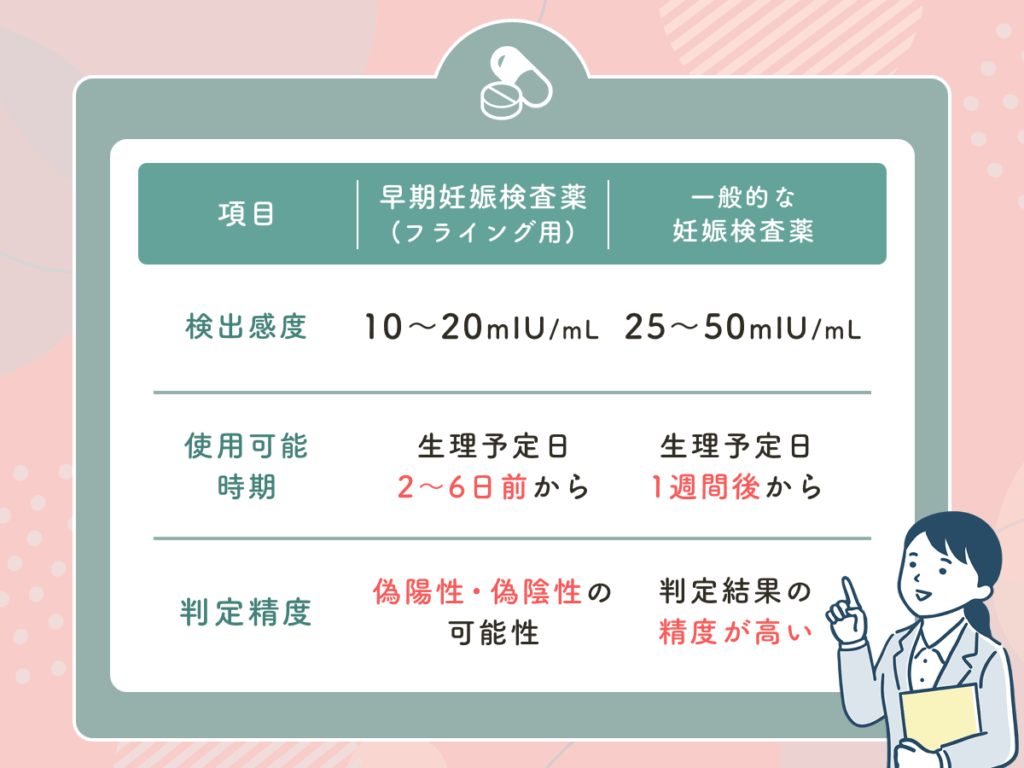 | 項目 | 早期妊娠検査薬 (フライング用) | 一般的な 妊娠検査薬 |