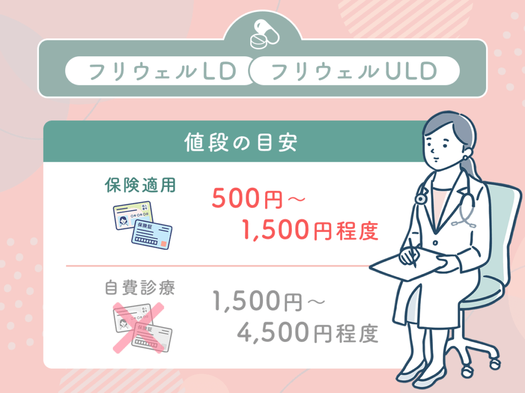 フリウェルLDとフリウェルULDの値段は産婦人科や病院ごとで異なりますが、保険適用で500円〜1,500円程度で保険適用外の自費診療であれば1,500円〜4,500円程度が目安です。