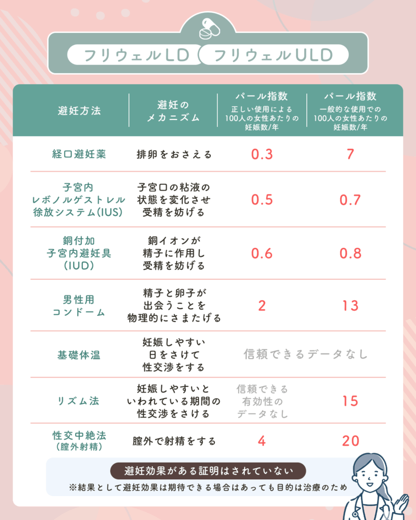 フリウェルLDとフリウェルULDの避妊効果に関する知恵袋の体験談を教えてください