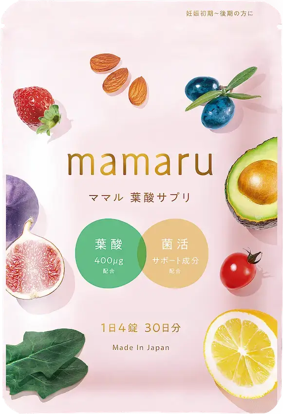 ママル葉酸サプリ![]() | 葉酸以外にも鉄分10mg・ビタミン・ミネラルを豊富に配合!医師監修のおすすめサプリ | 初回4,298円 | 400μg | 市販あり |