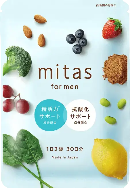 ミタス葉酸サプリは、男性向け商品の「mitas for men (ミタスフォーメン) 男性妊活サプリ」を取り扱っているため、パートナーと一緒に妊活ができるメリットが良いと口コミで評判です。